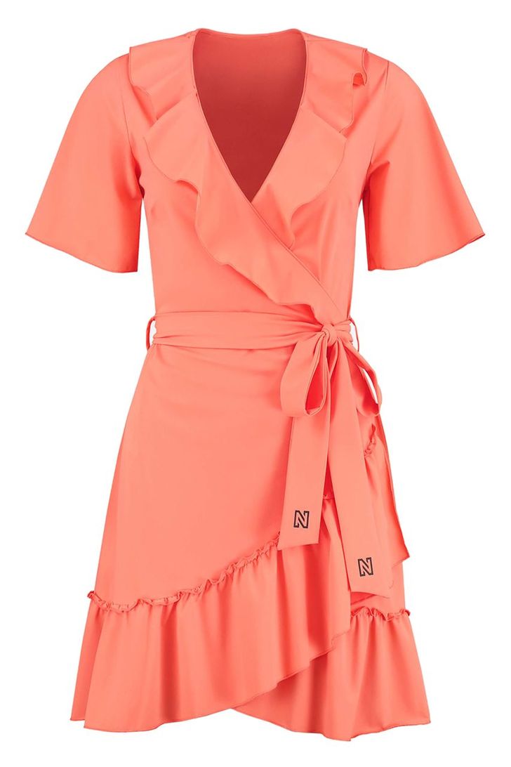 Een felgekleurd kledingstuk doet vaak vele hoofden draaien. Deze elegante oranje jurk zorgt ook voor een positieve sfeer: de omslagjurk zorgt voor een zomers gevoel en straalt feestelijkheid uit. De rouches geven een speels en zwierig effect aan de jurk. De tailleband met strik is zelf te verstellen waardoor de jurk fijn en getailleerd om het lichaam valt. Kortom, een fijne en soepele jurk waarmee je echt opvalt.
