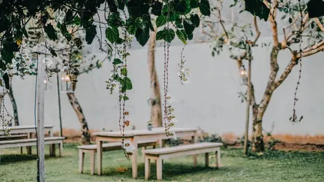 Zorg ervoor dat je over een geschikt geluidssysteem beschikt. Een draagbare luidspreker met Bluetooth-connectiviteit is handig, omdat je deze gemakkelijk kunt verplaatsen naar verschillende delen van de tuin. Speel een rustgevend muziekje af tijdens een rustig ontbijtje op zondagochtend of je yogasessies in de tuin. En voor een spetterend tuinfeest is muziek natuurlijk ook een must. Tip: stel je buren van tevoren op de hoogte, of nodig ze ook uit. Zo voorkom je boze gezichten.