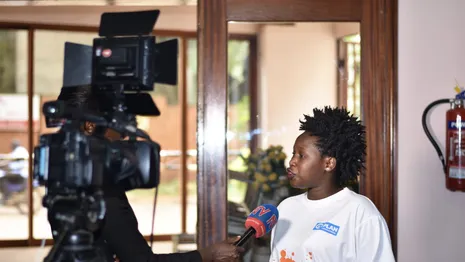 Op de foto: de 23-jarige Angella uit Kampala (Oeganda) riep tijdens de Orange the World- campagne in 2023 via de media op tot veiligere steden voor meisjes en jonge vrouwen.