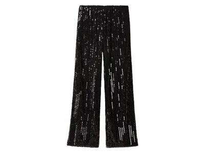Wat ons betreft geldt in de feestmaand het motto: go big or go home. Combineer de broek met een paillettentop of glitterlaarzen. Wil je het liever wat rustiger aanpakken? Draag een mooie satijnen blouse of top met een neutrale kleur boven de broek. Mag het wat stoerder of nonchalanter? Combineer de paillettenbroek dan met een zachte, oversized gebreide trui en een paar sneakers of enkellaarsjes. Easy does it!