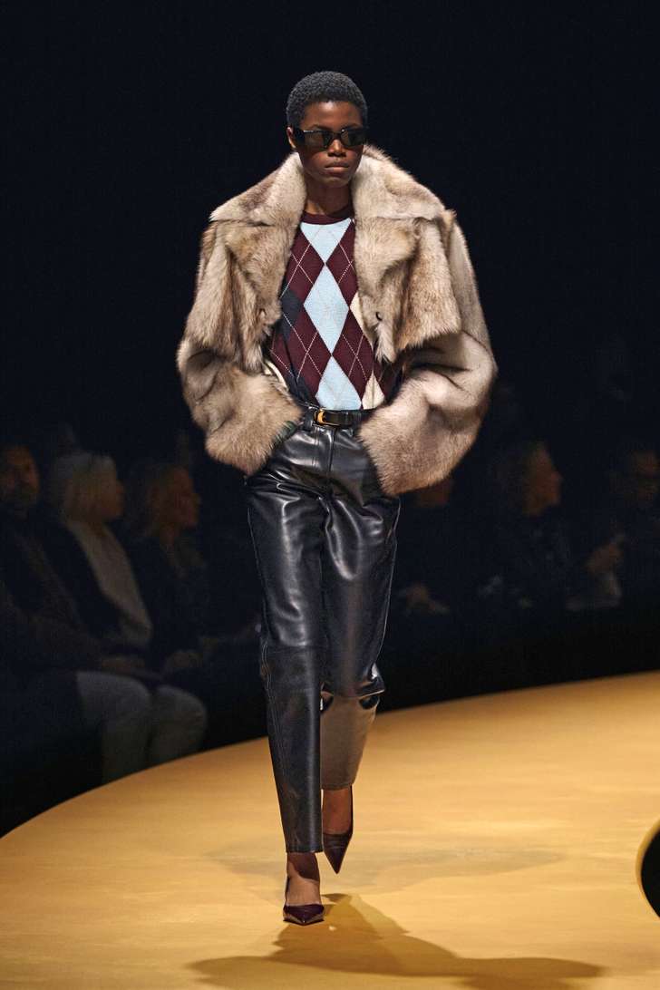 Diverse fashioninfluencers en designers hebben inmiddels al bewezen dat de argyle-ruit helemaal niet oubollig hoeft te zijn. Je hoeft de ruit namelijk heus niet te dragen bij alleen nette items. Zo combineerde Khaite de argyle-trui met een bontjas en leren jeans (in zwart en rood), en stylde Celine de trui af met een eyecatcher van een riem en sneakers.