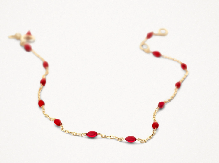 Schenk pure romantiek met deze 14k geelgouden Blush armband. De dieprode stenen symboliseren liefde en passie, wat het een perfect Valentijnscadeau maakt. Het verfijnde ontwerp en de warme glans geven elke outfit een luxe touch. Een tijdloos, schitterend sieraad dat haar dagelijks laat stralen en herinnert aan jouw liefde.