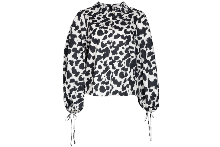 De blouse waar we het over hebben is gemaakt van poplin katoen en heeft wijde pofmouwen – want ja, ook pofmouwen maken dit voorjaar de blits. De blouse heeft een speelse touch door de strikdetails aan de uiteinden van de mouwen. Hiermee kun je zelf de mouwopening aanpassen. De blouse heeft een knoopsluiting en een klassieke kraag, waardoor-ie er netjes uitziet.