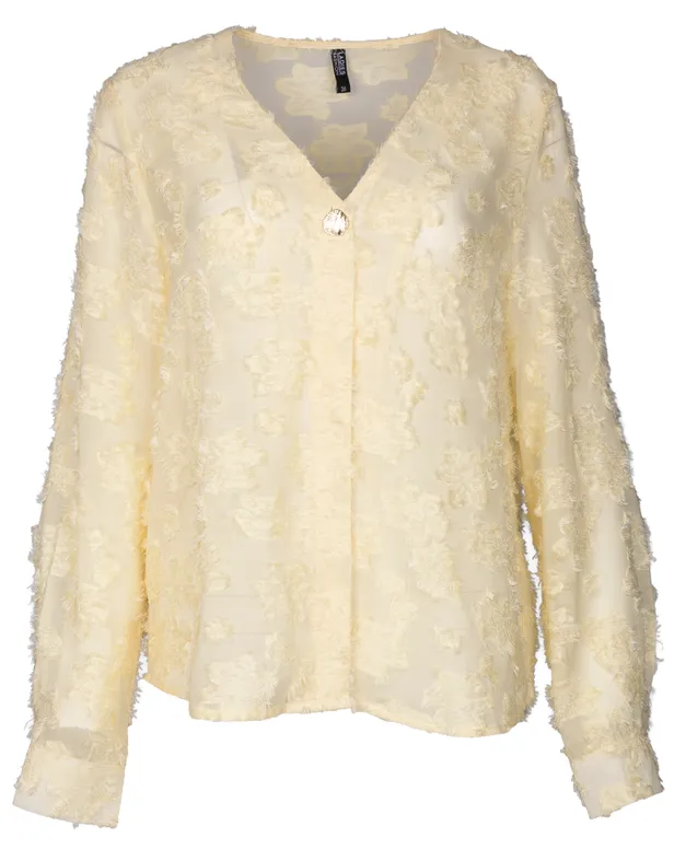 Wat maakt een betaalbaar kledingstuk direct chic? De afwerking. In het geval van deze blouse, die je al voor rond de 12 euro kunt vinden bij Wibra, zijn het de details die het verschil maken. De zachte, botergele kleur is op zichzelf al een statement van verfijning. Het is een tint die warmte toevoegt aan je teint zonder te overheersen.