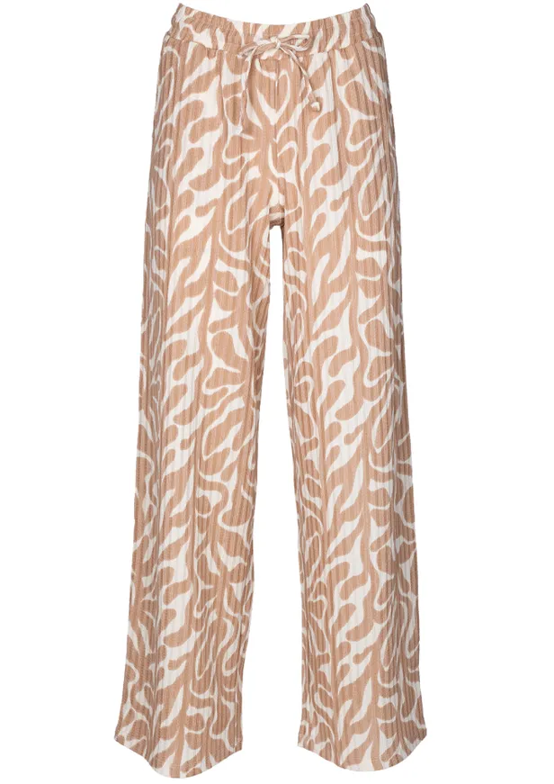 Deze broek met panterprint combineert een opvallend dessin met een subtiele ribstructuur. De broek heeft rechte pijpen en een elastische band met aantrekkoord. Hierdoor zit de broek je als gegoten. Ook heeft de broek zakken, zodat je er nog wat kleine spullen in kunt stoppen.